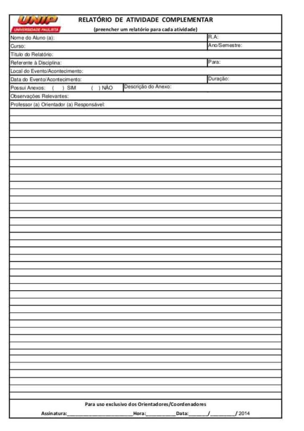 Relátorio Atividade Complementar Unip